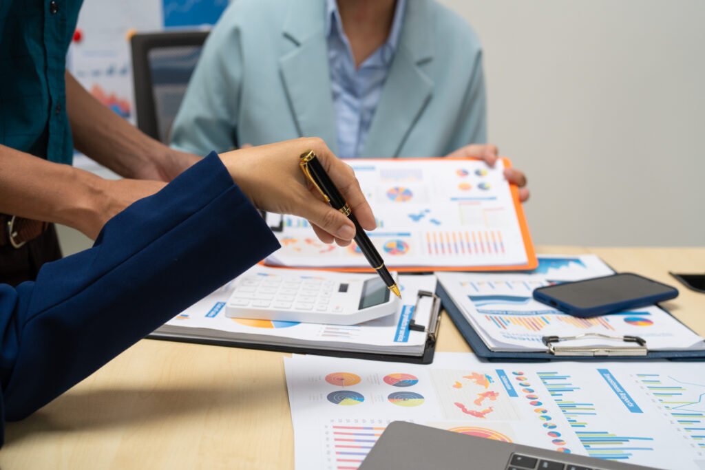 Team business people discussing a project in a meeting for analysis graph company financial.